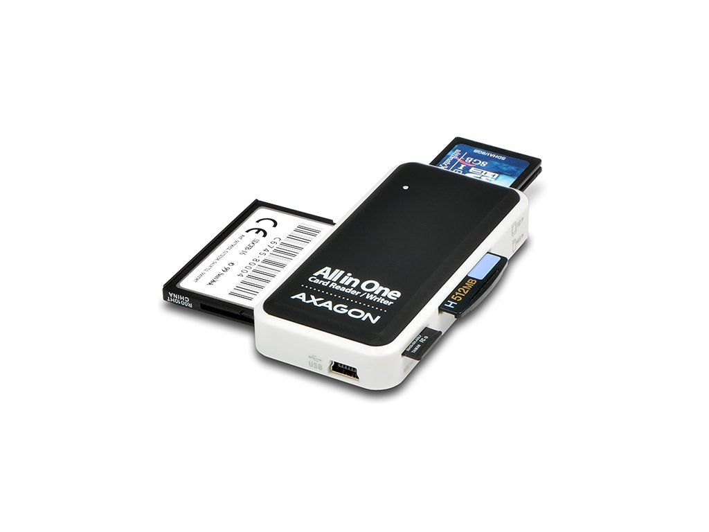 AXAGO CRE-X1 veľmi kompaktný all-in-one čítačka pamäťových kariet vybavená piatym slotom pre priamu podporu populárnych miniatúrnych microSD kariet. Použitý čipset novej generácie umožňujúce vyššiu rýchlosť čítania a zápisu najnovších vysokorýchlostných Compact Flash kariet.