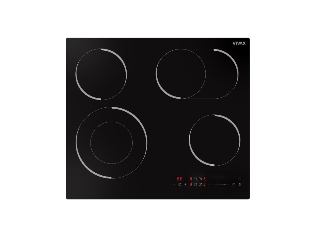 Vstavaná sklokeramická varná doska VIVAX BH-04MDOVC sa ovláda pomocou dotykových tlačidiel a digitálneho displeja.