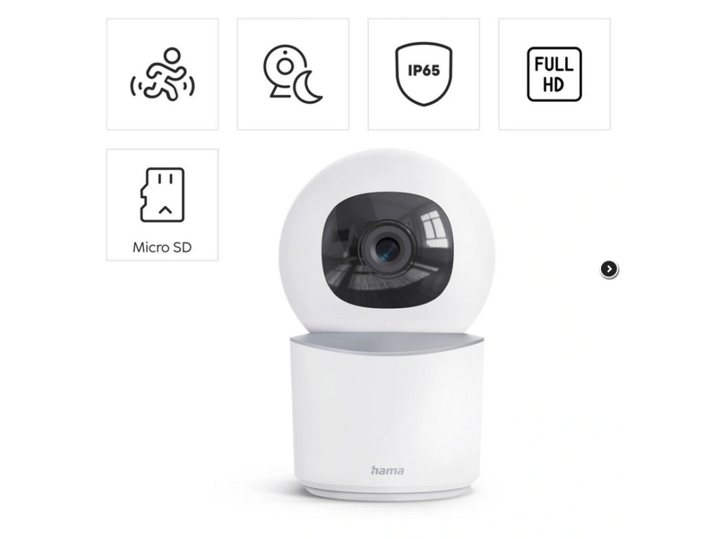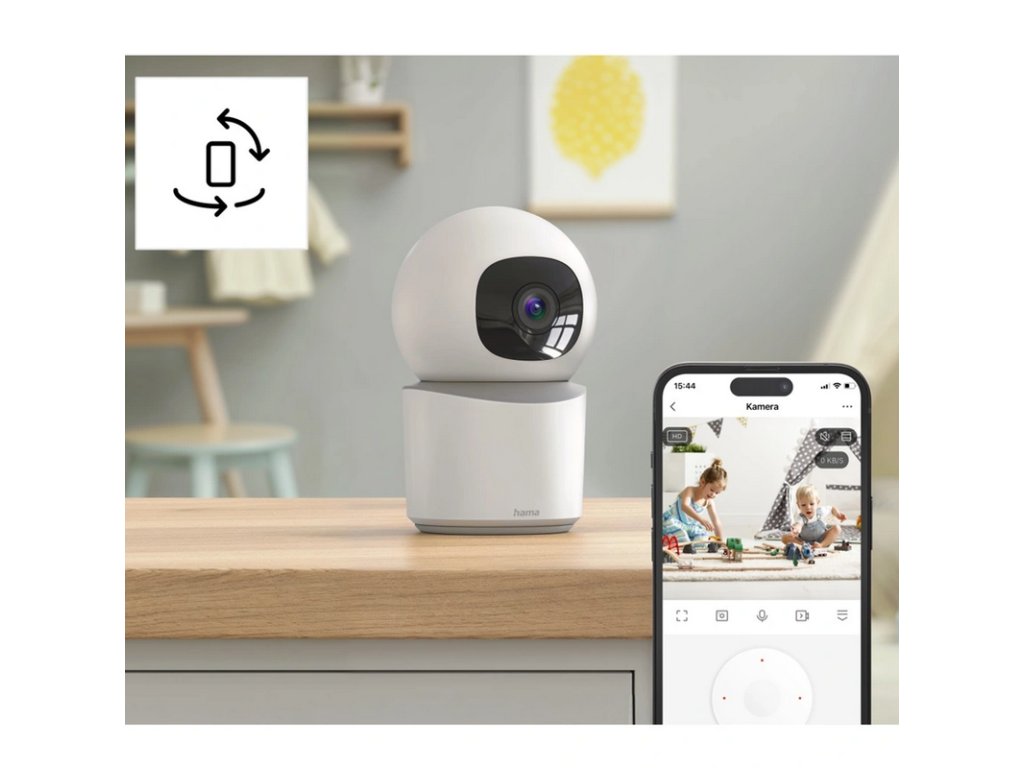 - kameru začleníte do vašej domácej WiFi siete pomocou bezplatnej aplikácie Hama Smart Home a následne ju ovládate odkiaľkoľvek pomocou mobilného telefónu alebo tabletu (aj viac užívateľov súčasne)
