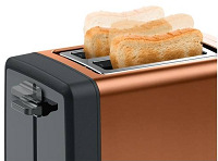 Ak sa stane, že sa pečivo v hriankovači vzprieči, nič sa nedeje. Hriankovač automaticky vypne ohrev a nemusíte sa báť, že hrianka sčernie a vy si popálite prsty. S podsvieteným tlačidlom STOP môžete prístroj kedykoľvek vypnúť sami. Skladovanie je jednoduché vďaka ľahkému navíjaniu kábla.