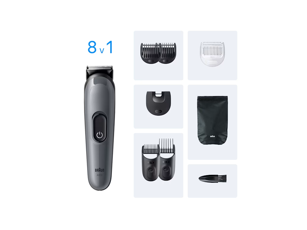 | Príslušenstvo: | - zastrihávaciu hlavicu - detailný zastrihávací nadstavec - 2 hrebeňové nadstavce: 1 mm a 2 mm - 2 posuvné hrebeňové nadstavce: 3-11 mm a 13-21 mm - hrebeňový nadstavec pre citlivú pokožku - nabíjací adaptér - čistiaci štetec - puzdro na uloženie |