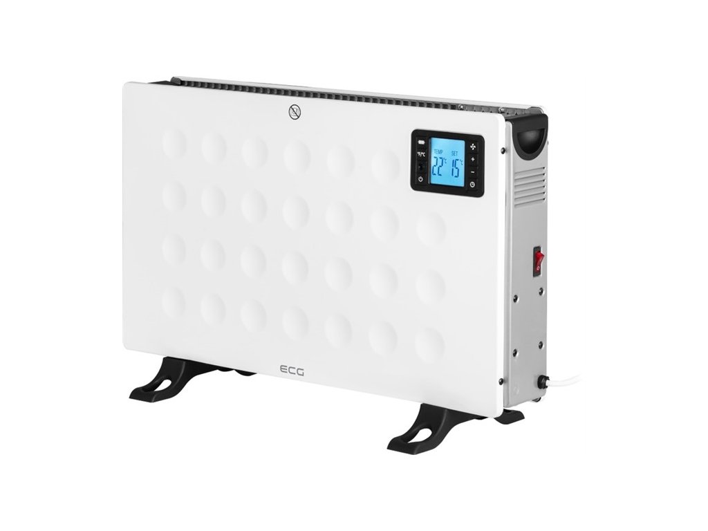 Teplovzdušný konvektor ECG TK 2080 DR White vám dopraje príjemné teplo v obývačke, spálni alebo kancelárii. Plynule nastaviteľný termostat zaistí teplotu od 5 °C do 37 °C. Vaše potreby budú tak uspokojené. V chladných zimných dňoch využite program temperovania teploty. Nestane sa, že by ste prišli do vymrznutej miestnosti. Vďaka tomuto programu nespotrebujete, ani viac energie na vykurovanie. Všetky vaše požiadavky nastavíte na LCD displeji alebo pohodlne pomocou diaľkového ovládača. Ďalším veľkým plusom je časovač na 24 hodín. Sami navolíte, kedy sa má prístroj vypnúť. Manipuláciu uľahčia praktické madlá na krajoch. Skvelú stabilitu zaistia veľké nohy a tak nebude hroziť prevrátenie. Nemusíte sa báť konvektor umiestniť ani do spálne. Jeho prevádzka je tichá a bezpečná. Hlučnosť nepresiahne 45 dB(A).