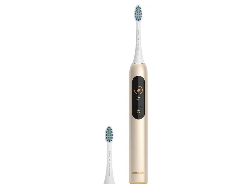 Sonická zubná kefka Sencor SOC 5011GD vám zaručí dokonalú ústnu hygienu a zdravší úsmev. Vďaka sonickému čisteniu s rýchlosťou až 38 000 pohybov za minútu odstraňuje zubný plak oveľa efektívnejšie ako manuálna zubná kefka. Prehľadný digitálny displej zobrazuje 4 prednastavené režimy čistenia - Clean, Soft, White a Massage, ktoré si môžete vybrať podľa vašich potrieb.