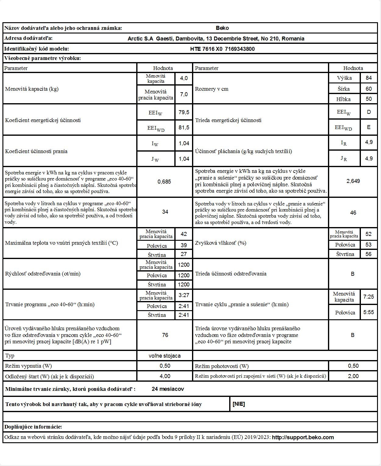 | Ročná spotreba energie prania a sušenia (kWh/rok) | 1134 kWh |