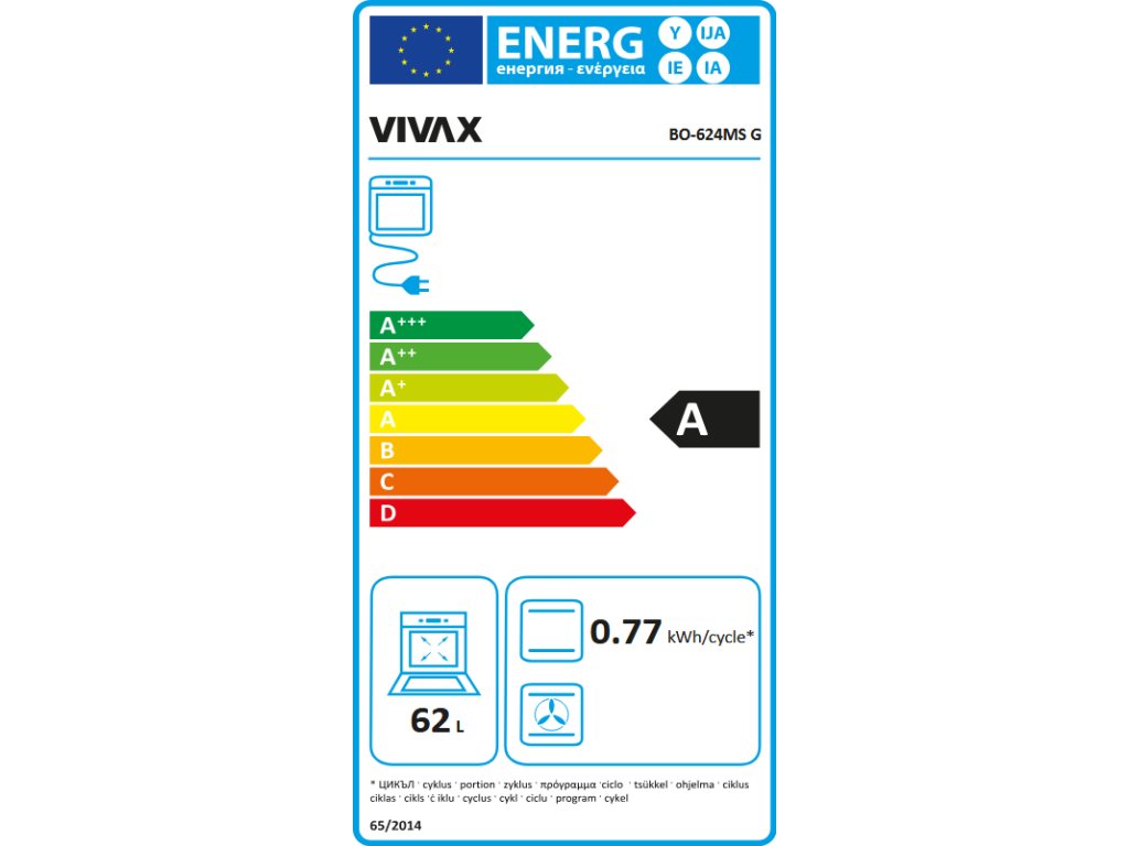 Vstavaná rúra VIVAX BO-624MS G s najvyššou energetickou účinnosťou A umožňuje rýchlejšie a jednoduchšie pečenie. Rúra má 3 programy + osvetlenie rúry, ktoré uľahčuje jej používanie. Ak chcete sofistikovaný dizajn a nechcete si pečenie príliš komplikovať – k dispozícii sú klasické programy s ohrevom horného a dolného ohrevného telesa a iba horného alebo iba dolného ohrevného telesa.
