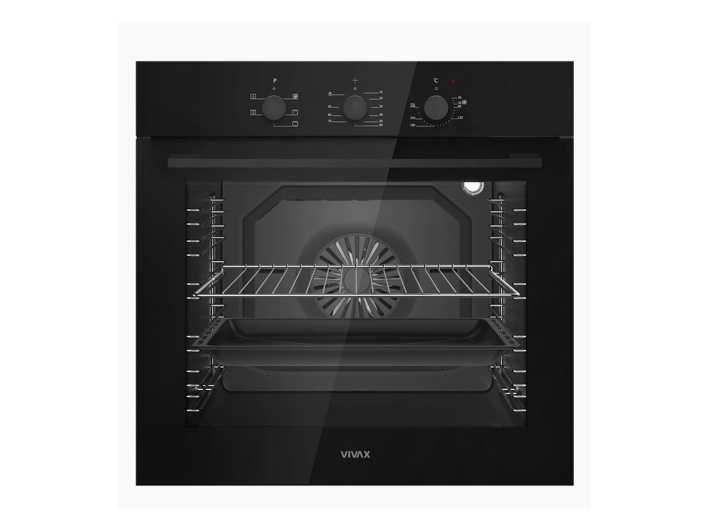 Vstavaná rúra VIVAX BO-806BFTM G so svojím veľkým objemom 80l uspokojí potreby aj väčších rodín. Má 5 programov pečenia - okrem klasického horného a dolného ohrevu je k dispozícii aj funkcia pečenia s ventilátorom, ktorá umožňuje rovnomernejšie a rýchlejšie pečenie, a pečenie na viacerých úrovniach.