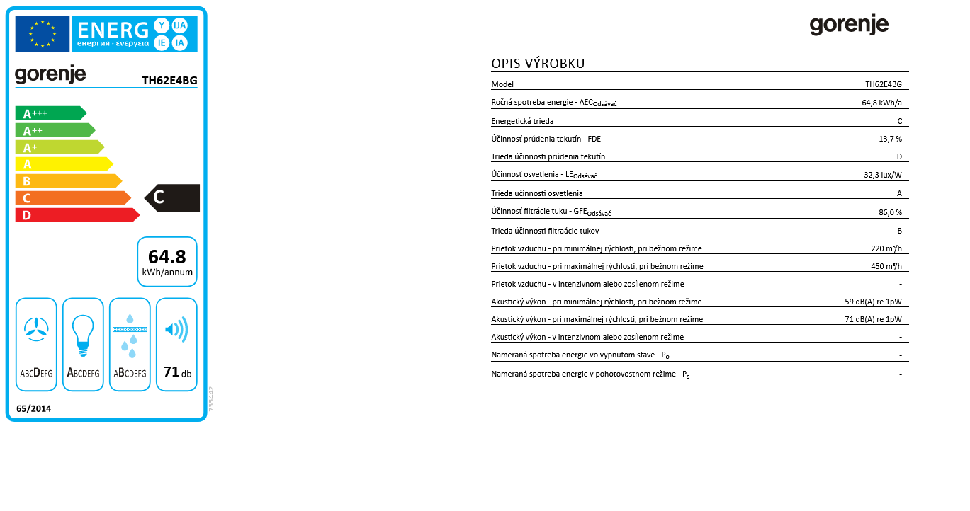 | Ročná spotreba energie - AECOdsávač | 64,8 kWh/a |