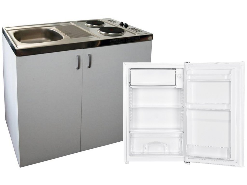 Minikuchynka s nerezovým drezom, dvojplotýnkovým varičom a jednodverová chladnička Guzzanti GZ 90A = VÝHODNÝ NÁKUP !!!